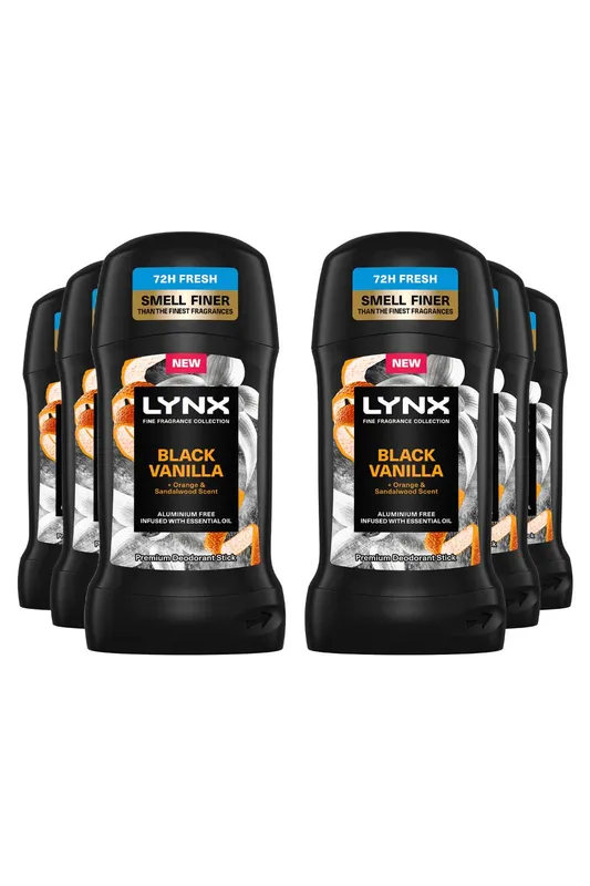 Lynx Men's 'Deodorant' Stick Black Vanilla w/ 72Hrs Freshness 50ml, 6 Pack in White White One Size female