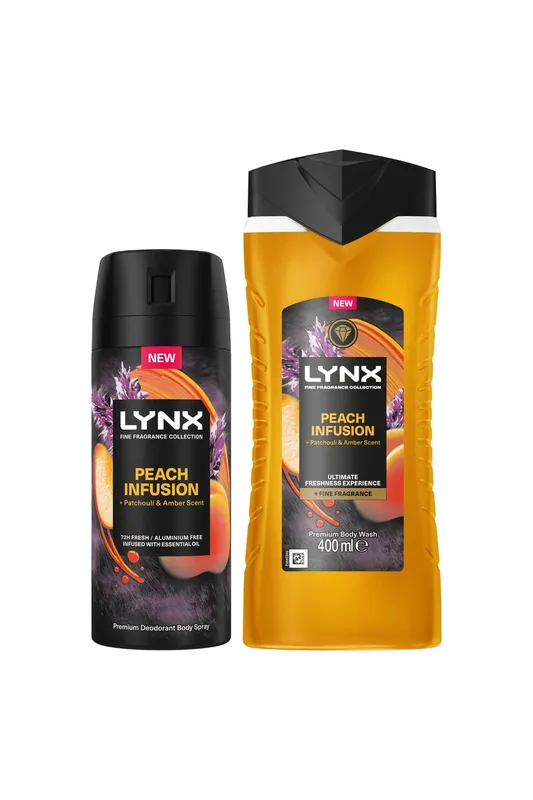 Lynx Men's Fine Fragrance PeachInfusion Bundle Body Spray & Body Wash in Yellow Yellow One Size female