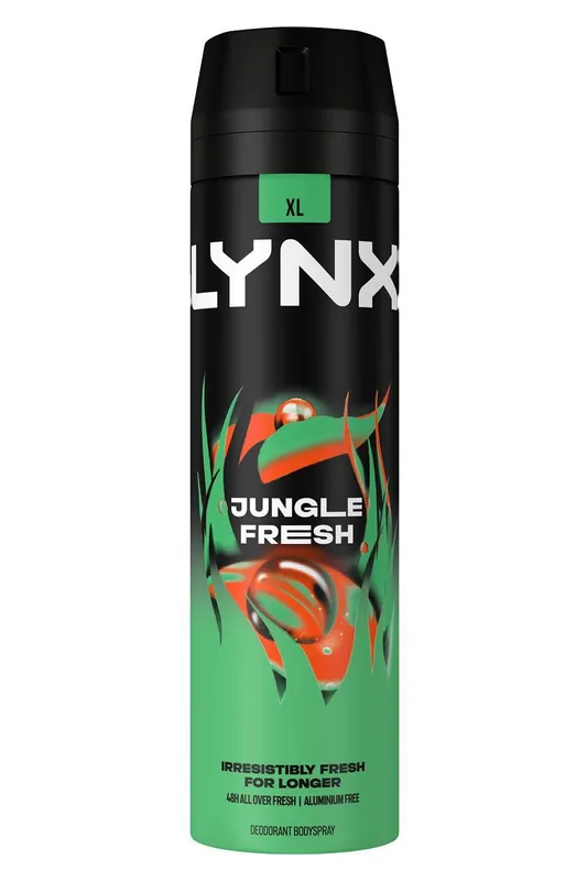 Lynx Men's Jungle Fresh Body Spray XL 48-Hour HD Fragrance Deodorant, 200ml in Black Black