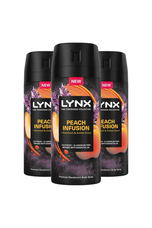 Lynx Men's Men 'Body Spray' Fine Fragrance Collection Peach Infusion 150ml, 3pk in White White