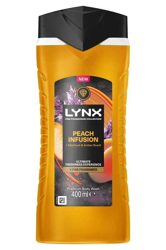 Lynx Men's Peach Infusion Body Wash w/ 12Hrs of Freshness for Men, 400ml in Black Black One Size female