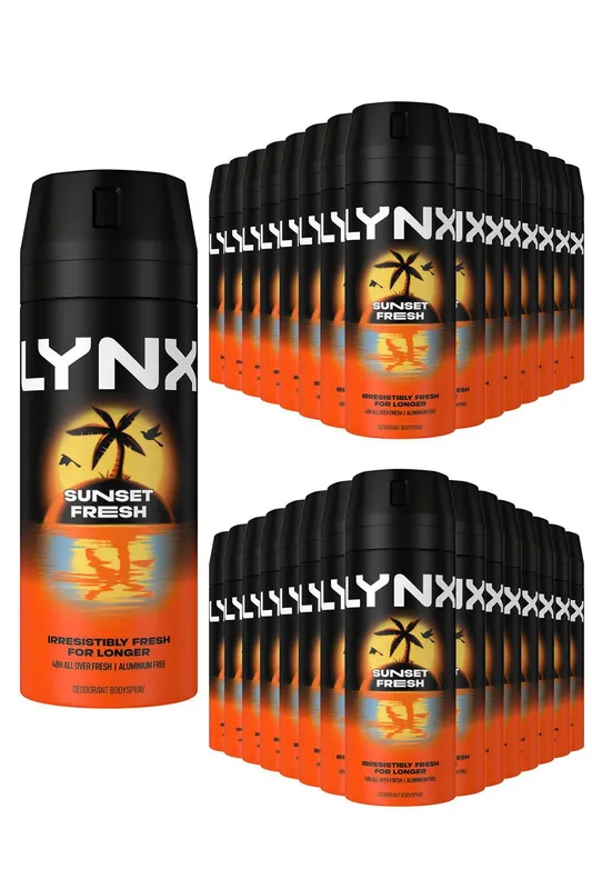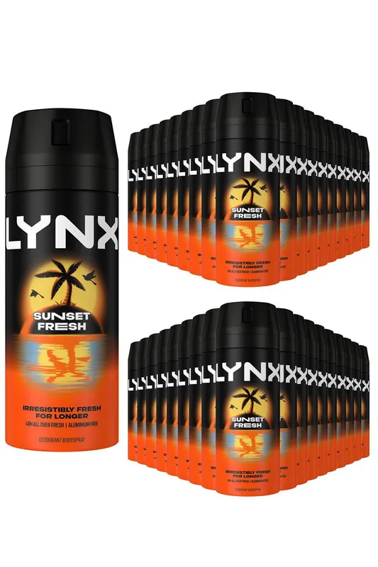 Lynx Sunset Fresh Men's Deodorant Body Spray 150ml, 36 Pack in Black Black One Size female