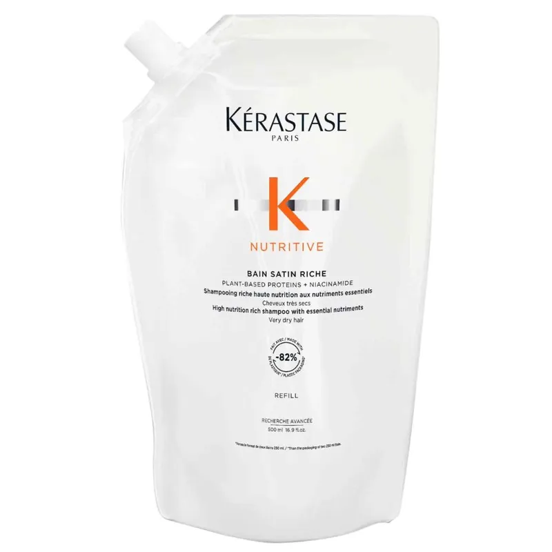 Kérastase Bain Satin Riche High Nutrition Riche Shampoo Plant-Based Proteins + Niacinamide Very Dry Hair 500mL Refill