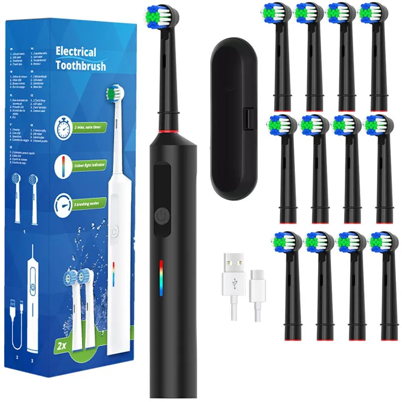 Hinsinc Unisex Toothbrush Electric Rechargeable Pro Rotating Brush Oral-B Heads Timer Modes Usb in Black Black One Size female