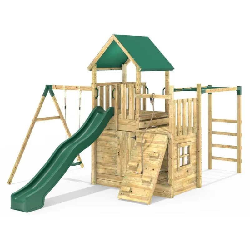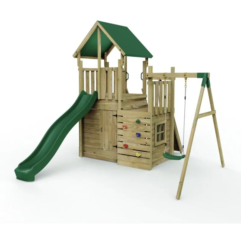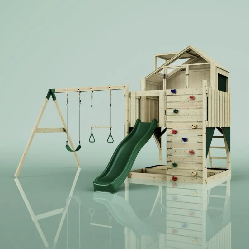 REBO PolarPlay Kids Climbing Tower & Playhouse - Swing Odin Green