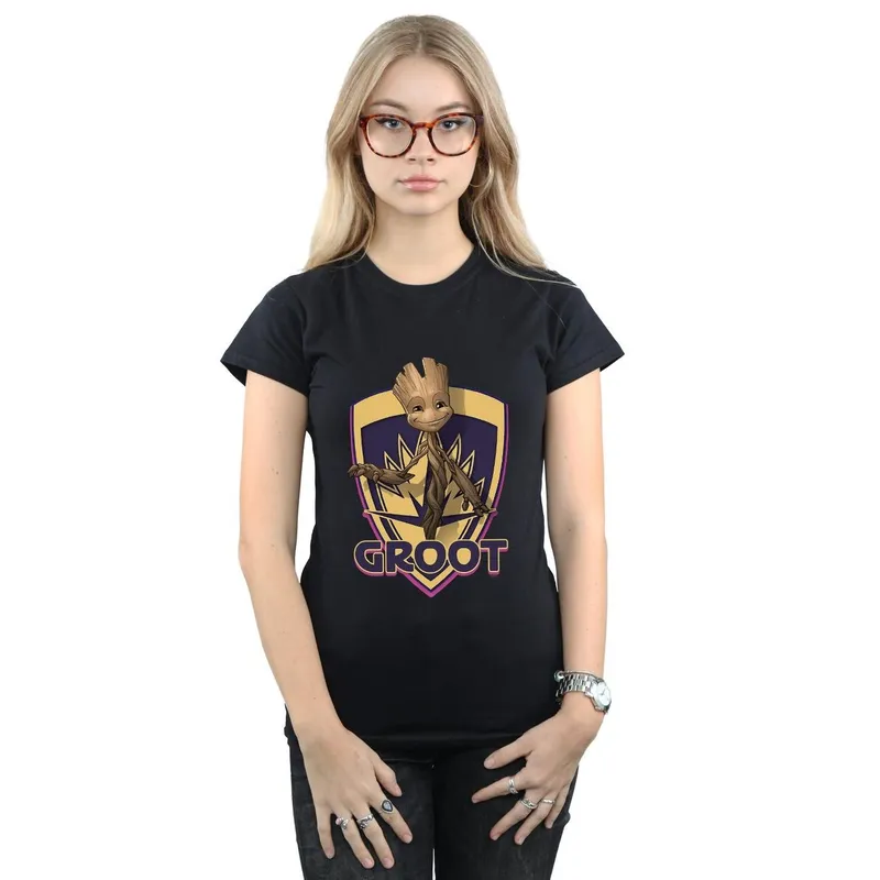 Marvel Women's Guardians Of The Galaxy Groot Badge Cotton T-Shirt in Black Size: 2XL Black 2XL