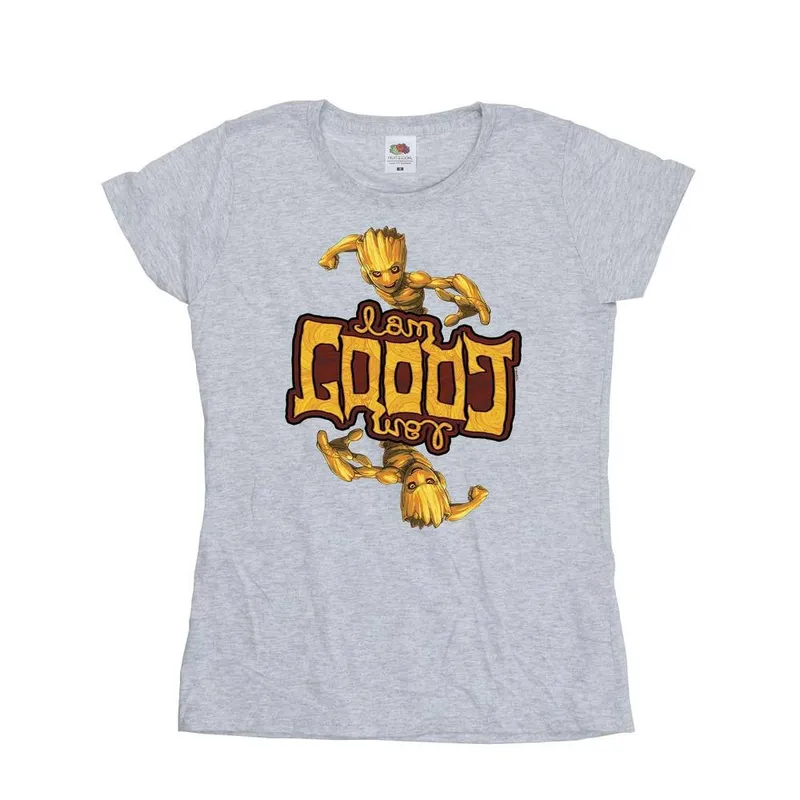 Marvel Women's Guardians Of The Galaxy Groot Inverted Grain Cotton T-Shirt in Grey Size: 2XL - Grey - Size: 2XL