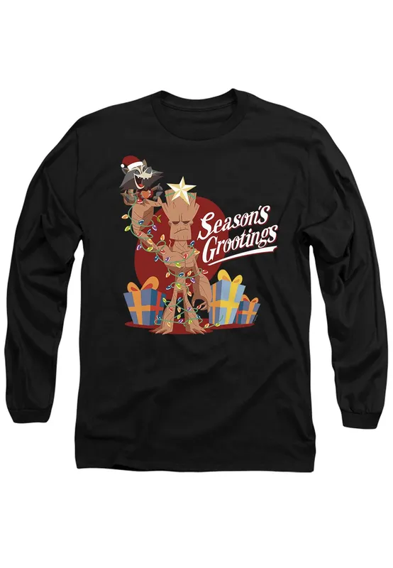 Marvel Guardians Of The Galaxy Seasons Grootings Long Sleeve T-Shirt, Black Size: XL Black XL
