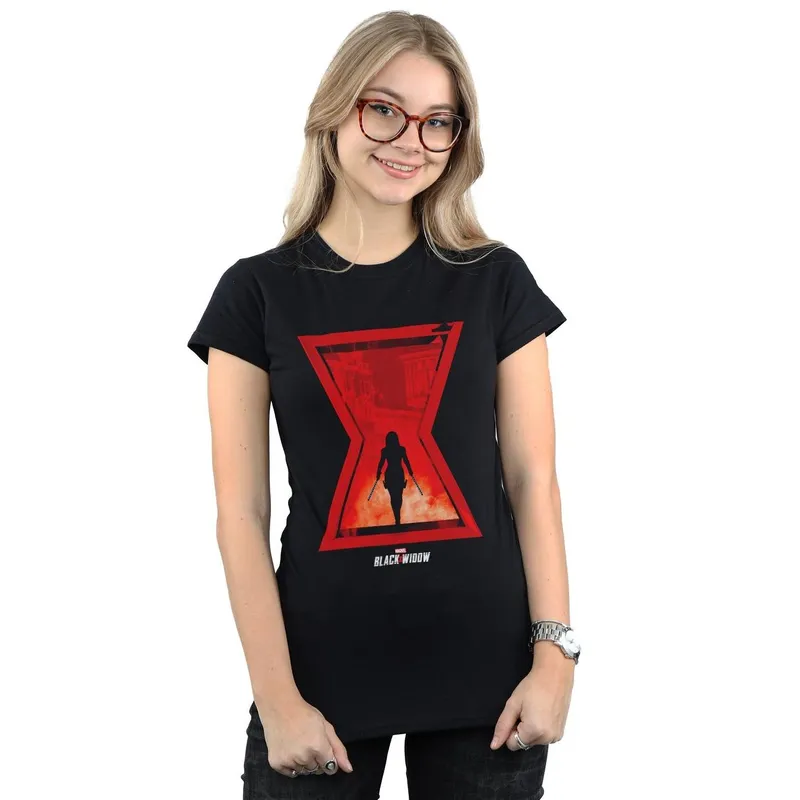 Marvel Women's Black Widow Movie Sisters Silhouette Cotton Boyfriend T-Shirt Size: Small - Black - Size: S