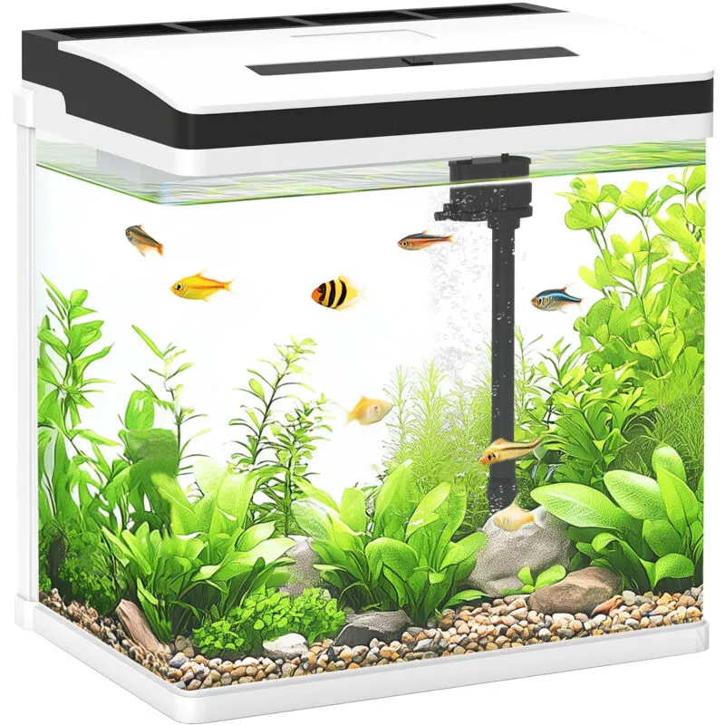 Aquarium Glass Fish Tank w/ Filter, led Lighting, Water Pump 30.5H x 29L x 20Wcm - Pawhut