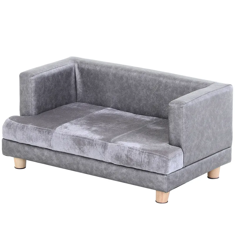 PawHut Dog Sofa Bed for Small-Sized Dogs, Elevated Pet Chair with PU Cover, Soft Cushion, Cat Couch Lounger with Anti-slip Legs - Grey