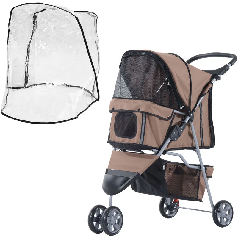 Pawhut - Dog Stroller w/ Cover, Folding Cat Pram Dog Pushchair for s xs Dogs Brown - Brown