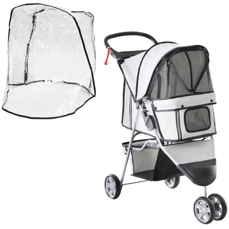Pet Travel Stroller Cat Dog Pushchair Carrier Three Wheels for Small Dogs Grey - Pawhut