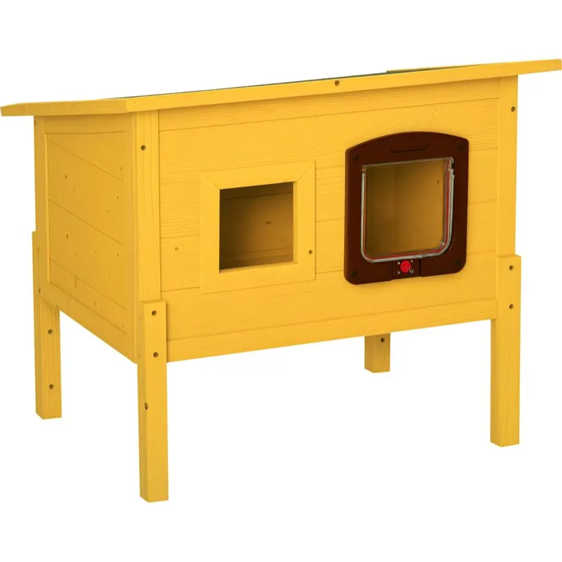 Pawhut - Wooden Cat House Pet Home Outdoor Waterproof Door Roof Shelter Garden