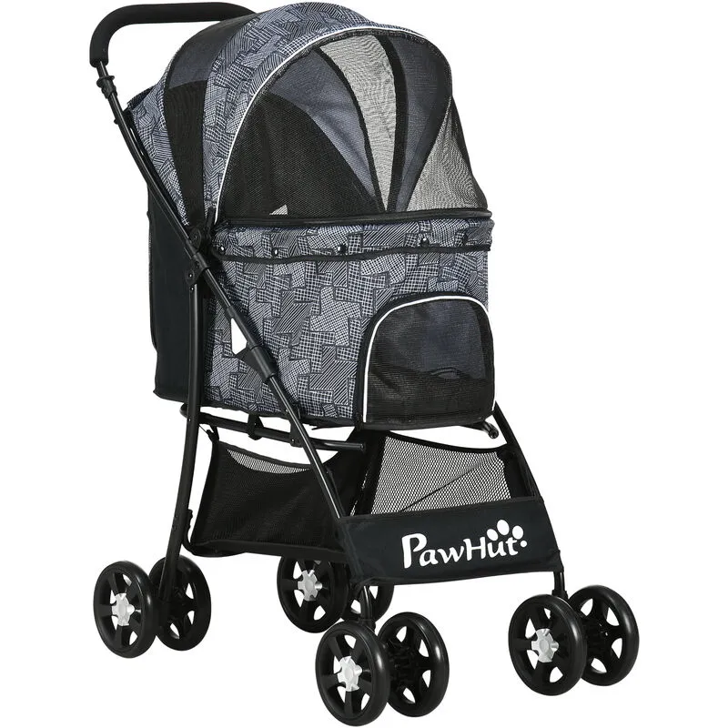 Pet Stroller Dog Pram Pushchair Cat Travel Carriage w/ Universal Wheels Grey - Pawhut