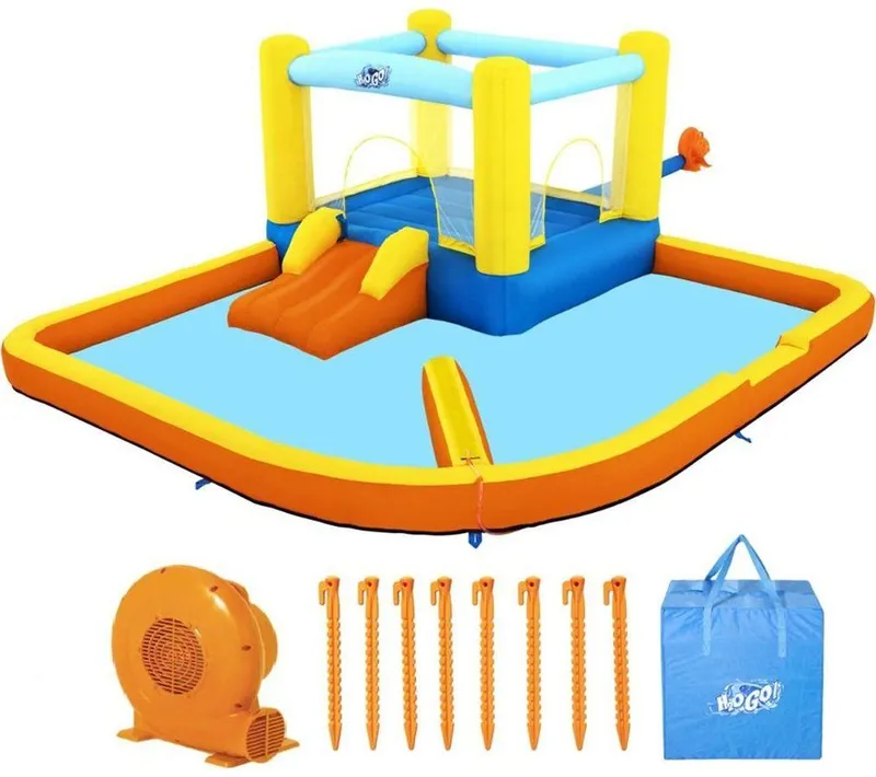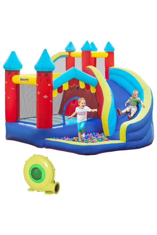 OUTSUNNY 4 in 1 Inflatable Bouncy Castle with Slide Pool Trampoline Climbing in Blue Blue