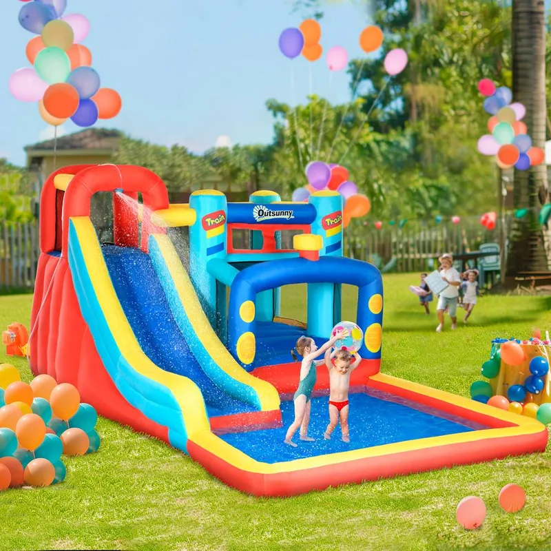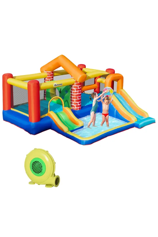 Outsunny Bouncy Castle with Slide Pool Climbing Wall -