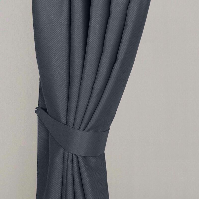 Homescapes - homecapes Dark Grey Herringbone Chevron Curtains Tie Backs Pair