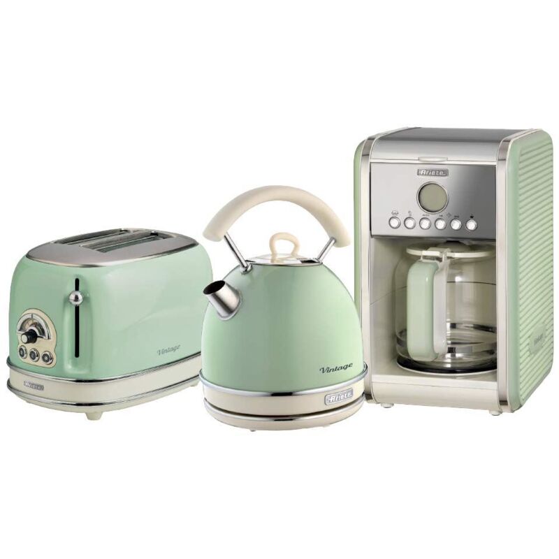 ARPK8 Retro Style Jug Kettle, 2 Slice Toaster and Filter Coffee Machine Set, Vintage Design, Green - Ariete