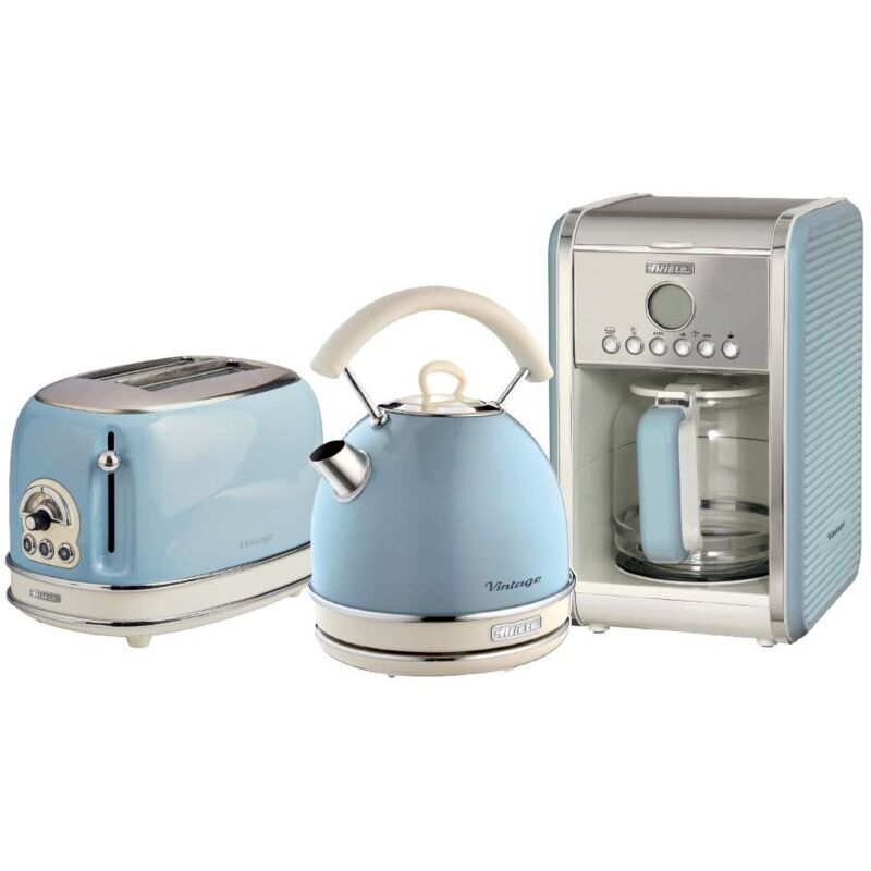 Ariete - ARPK15 Retro Style Dome Kettle, 2 Slice Toaster and Filter Coffee Machine Set, Vintage Design, Blue