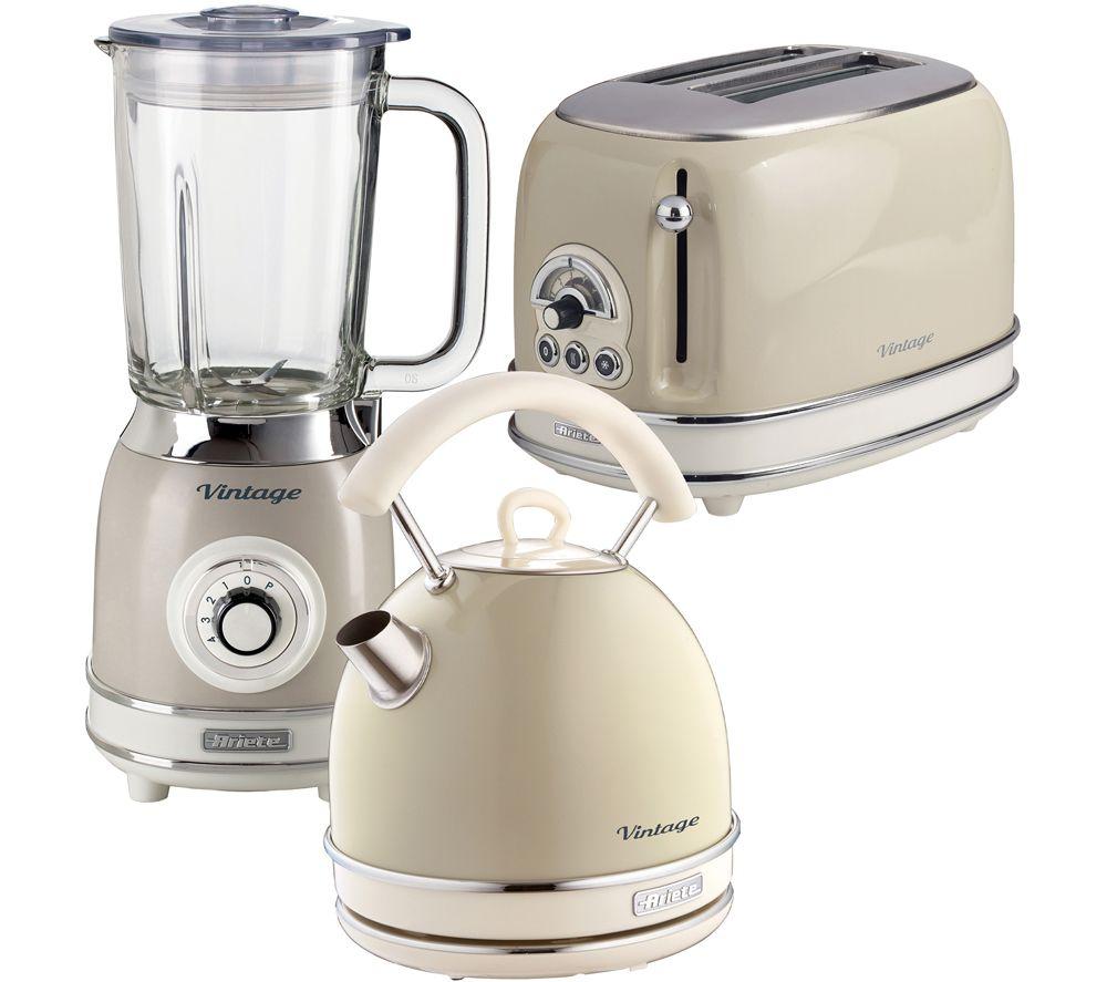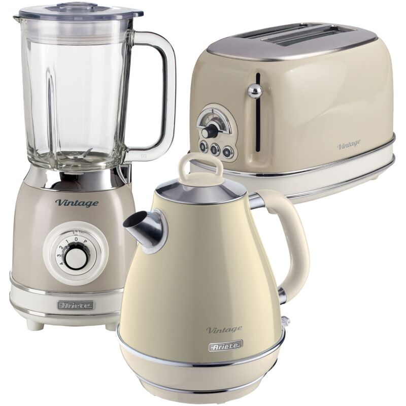 Ariete Vintage ARPK25 2-Slice Toaster, Traditional Kettle & Blender Bundle - Beige, White