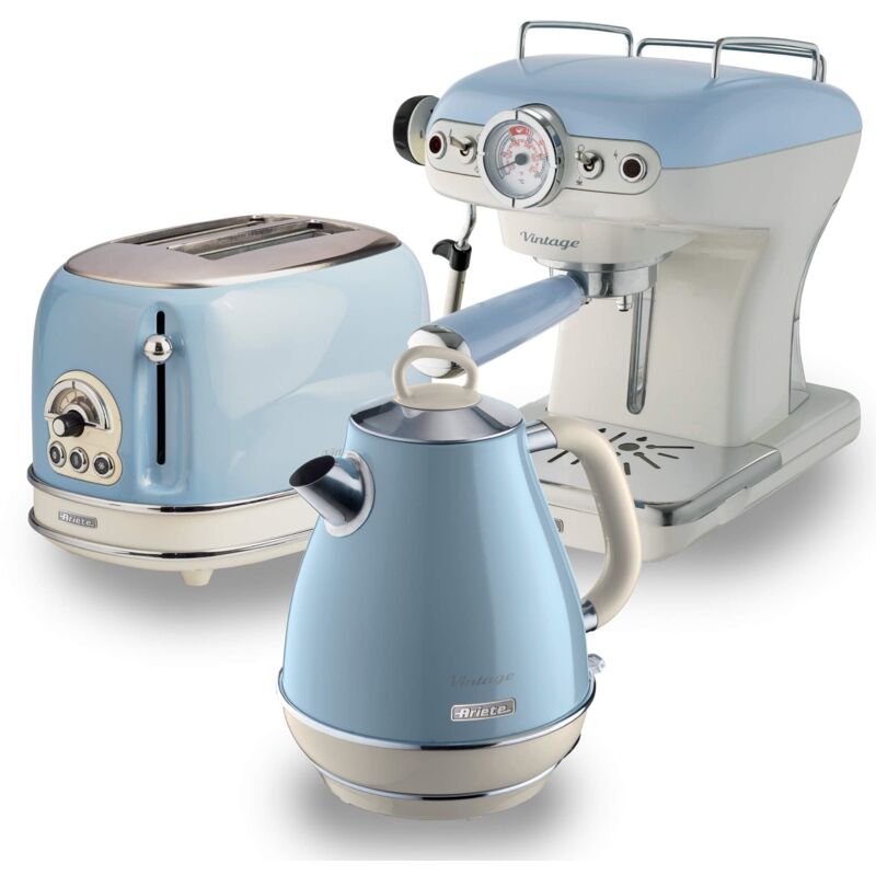Ariete Vintage Dome Kettle, 2 Slice Toaster & Espresso Coffee Machine Set in Blue Blue