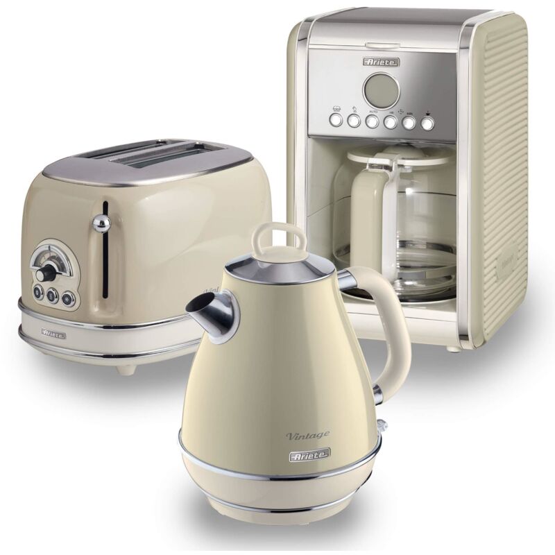 ARPK7 Retro Style Jug Kettle, 2 Slice Toaster and Filter Coffee Machine Set, Vintage Design, Beige - Ariete