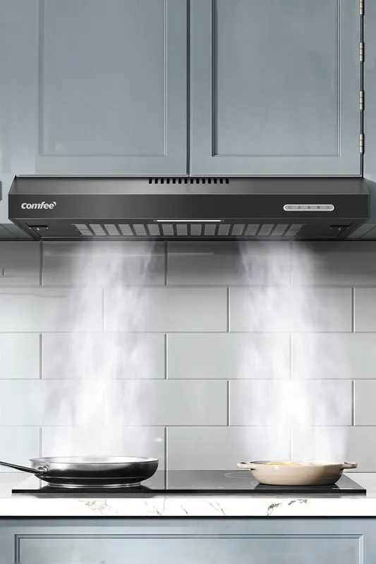 Living and Home 60cm Visor Cooker Hood Under Cabinet Range Hood Wall Mounted Extractor with LED in Black - Black - Size: One Size