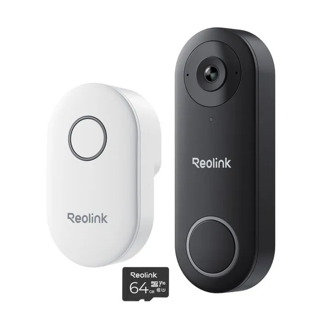 REOLINK D340B 2K Smart Video Doorbell, Chime & 64 GB Memory Card - Black & White, White,Black