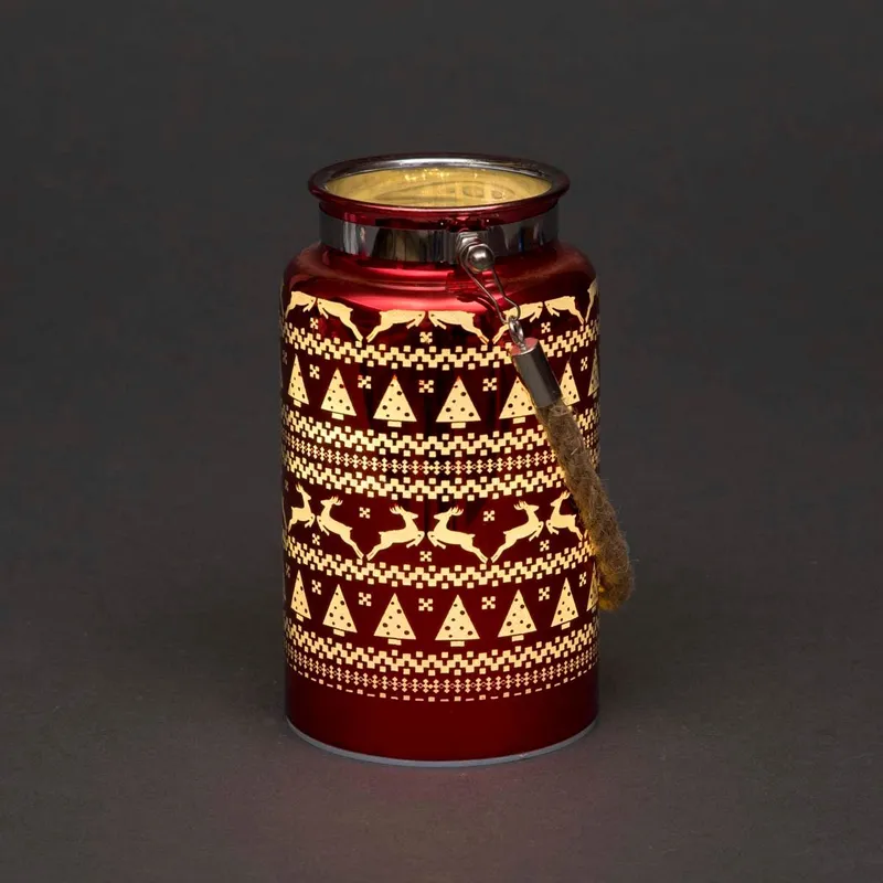 Shatchi 16cm Christmas Decorated Jar Table Skandi Design Red Lantern Red