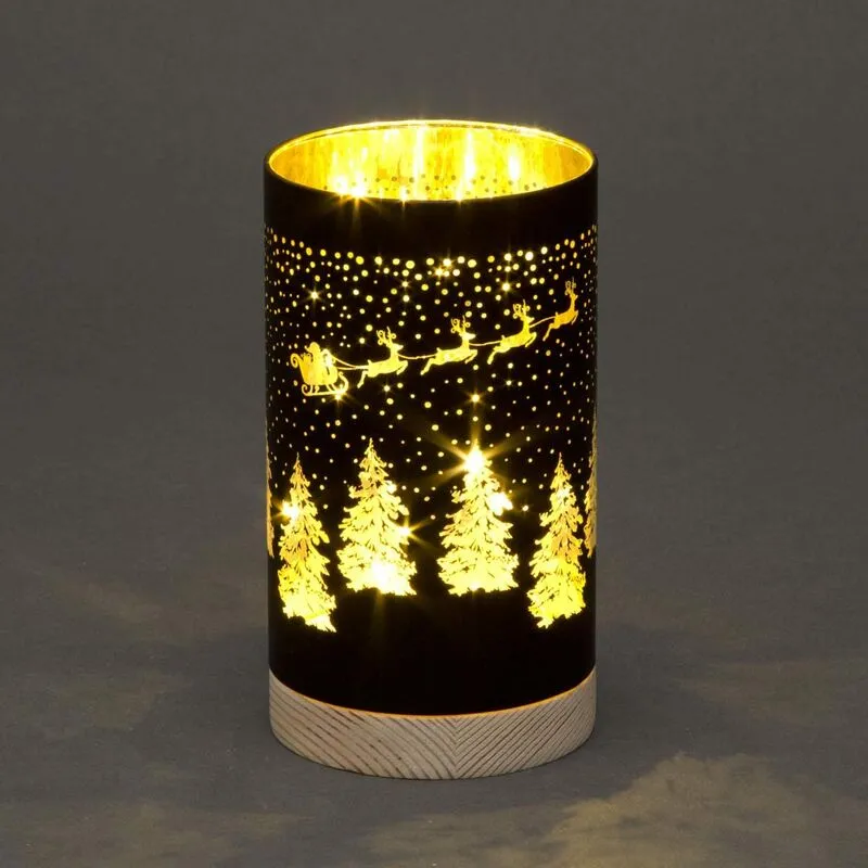 Shatchi - 23cm Christmas Decorated Vase Table Santa Sleigh Scene Black