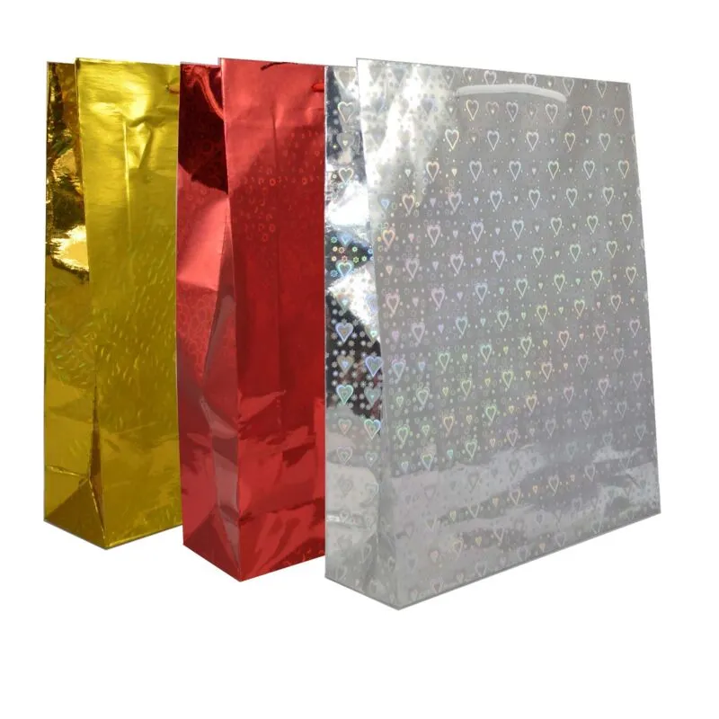 Shatchi - 25 x Assorted Colours Holographic Gift Bag Small Christmas Birthday Present