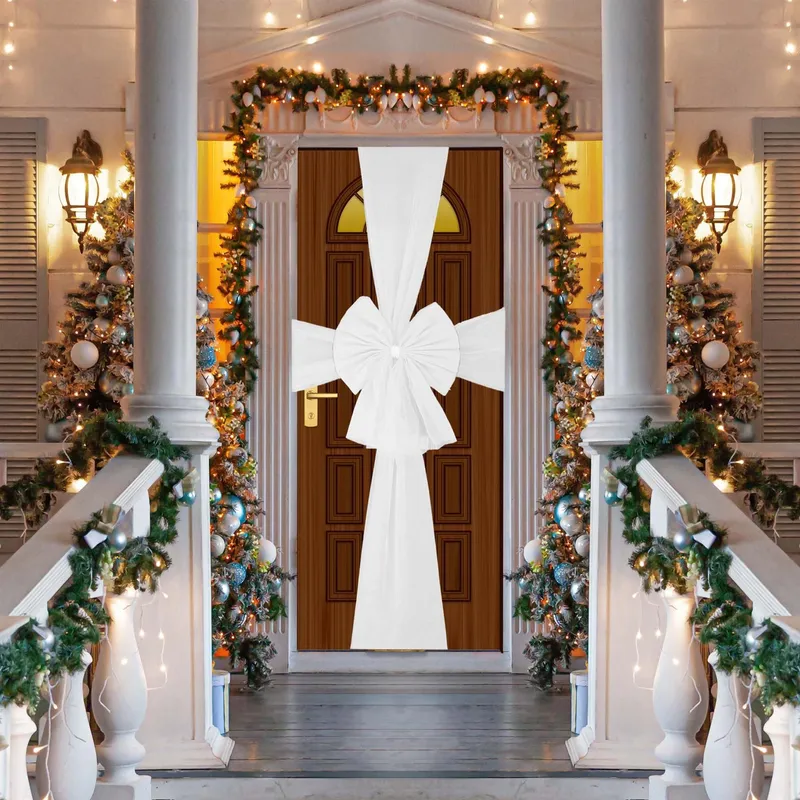 Shatchi Christmas Door Bow - 7.5m Diamante Giant Bow Door Cover - Front Door Decorations for Xmas Wedding, Baby Shower Outside Home Decor in White White