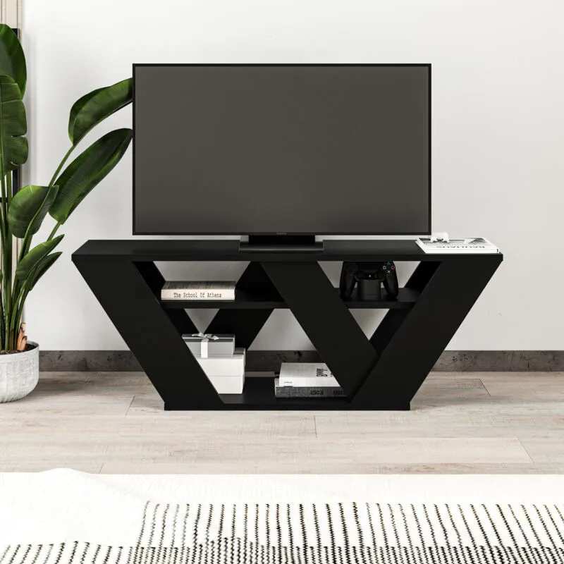 Decortie - Pipralla Modern tv Stand Multimedia Centre tv Unit With Shelves 110cm - Black Bute - Black Bute