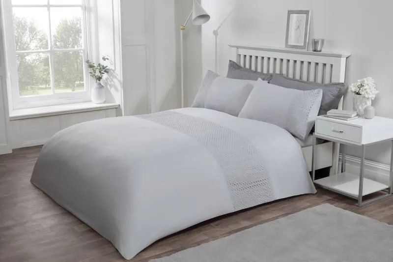 Smart Living Luxury Super Soft Stylish Lace Panel Duvet Cover with Pillowcases in Silver Size: King Silver King