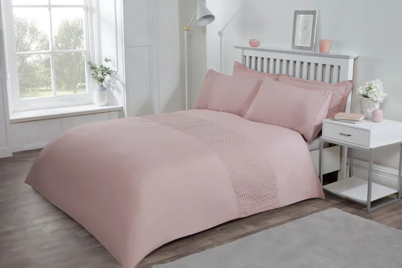 Smart Living Luxury Super Soft Stylish Lace Panel Duvet Cover with Pillowcases in Pink Size: King Pink King
