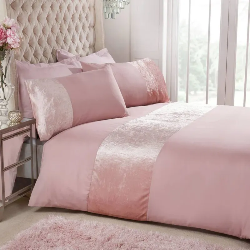 Smart Living Soft & Elegant Cosy Velvet Cuff Panel Duvet Cover Set with Pillowcases in Pink Size: King - Pink - Size: King