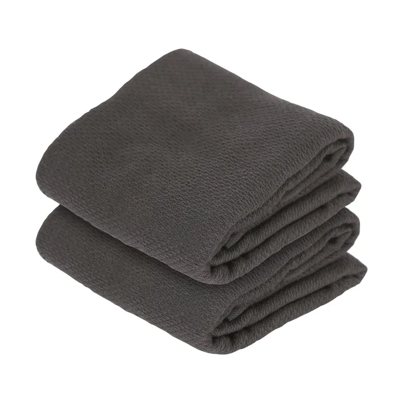 Nicola Spring Deluxe 100% Cotton Tea Towel Absorbent Kitchen Dish Cloth Drying Towels - 60cm x 40cm - Pack of 2 in Charcoal Charcoal