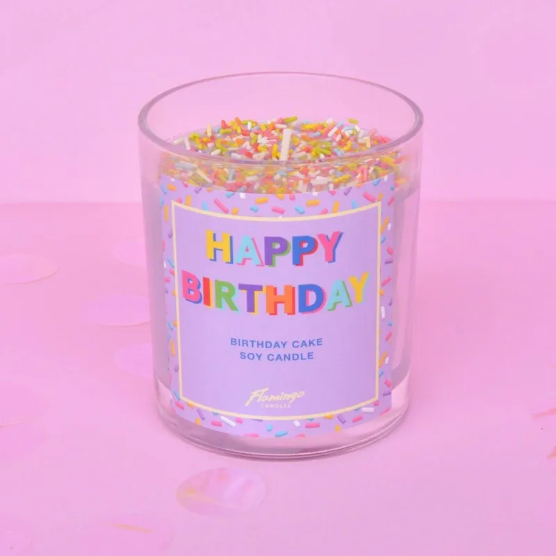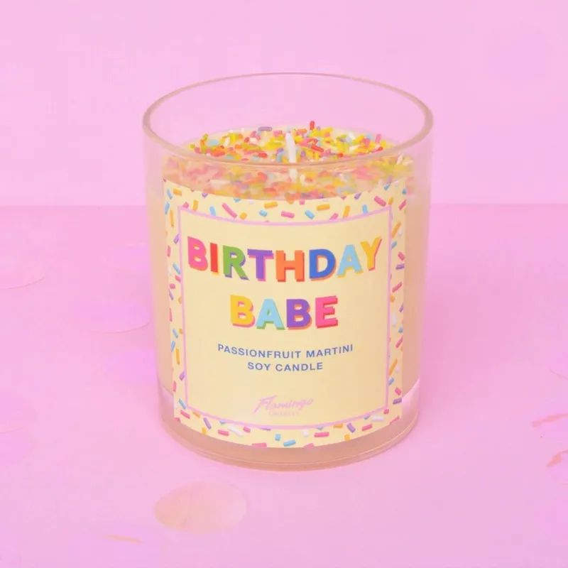 Flamingo Candles Passionfruit Martini Birthday Babe Sprinkle Candle in Yellow Yellow