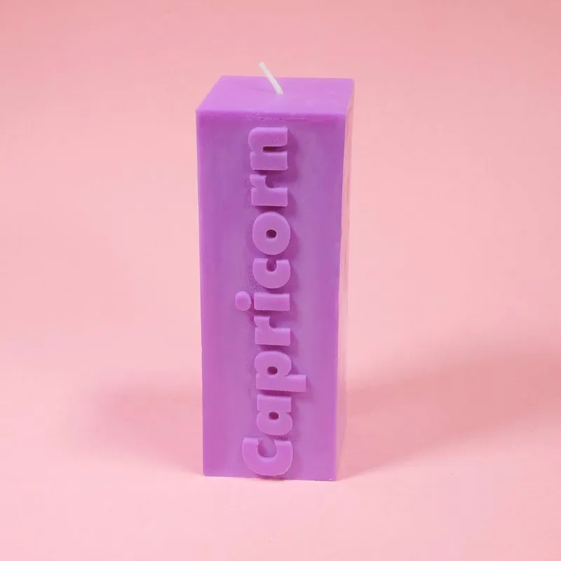Flamingo Candles Capricorn Zodiac Block Pillar Candle in Purple - Purple - Size: One Size