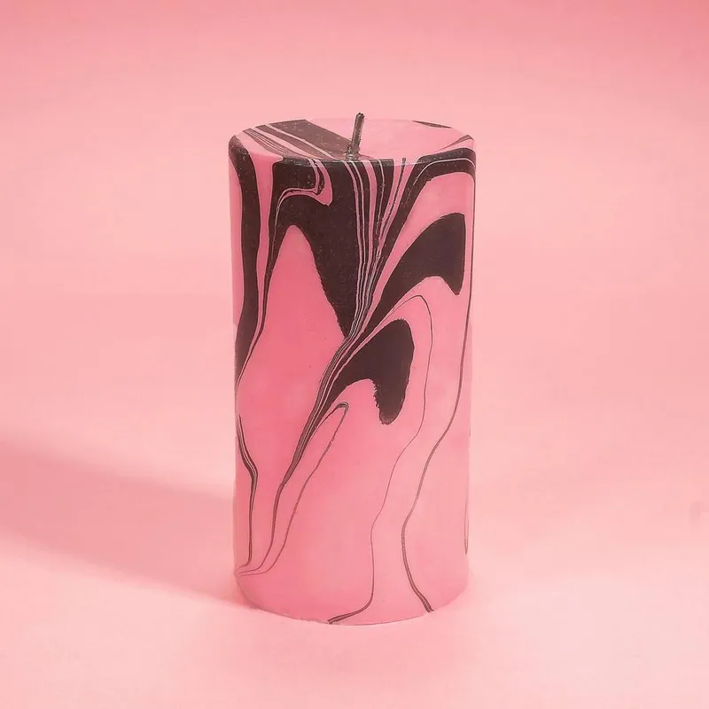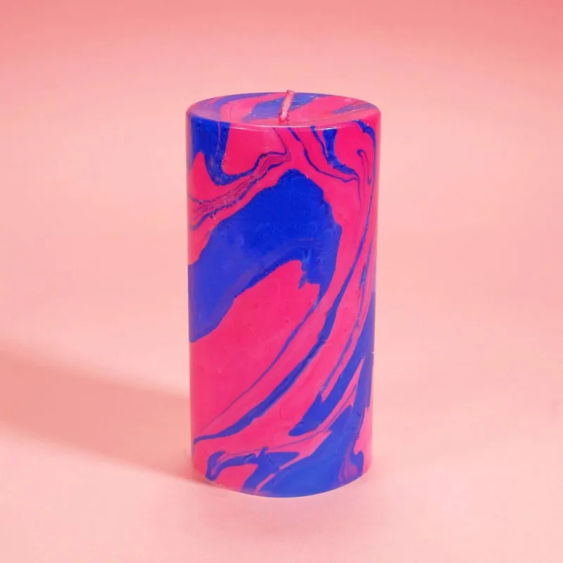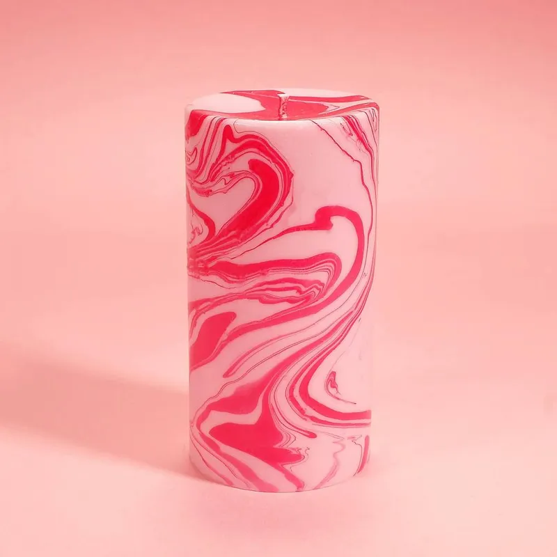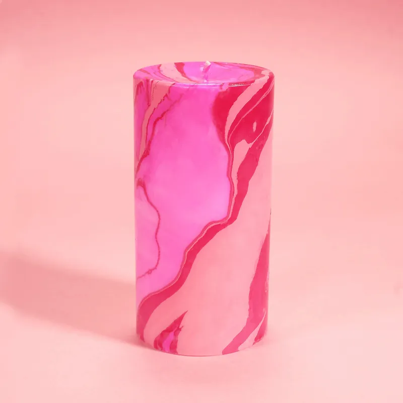 Flamingo Candles Totally Groovy Marble Pillar Candle in Bright Pink Bright Pink