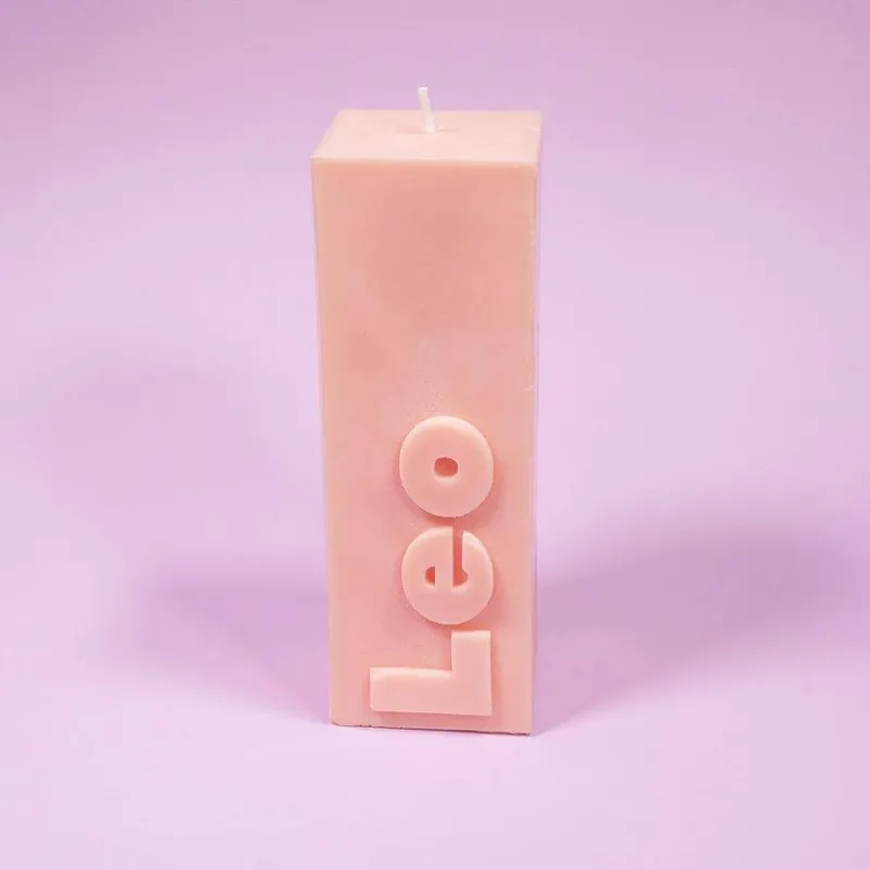 Flamingo Candles Leo Zodiac Block Pillar Candle in Peach - Peach - Size: One Size