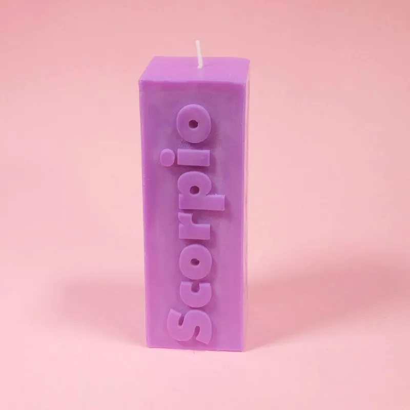 Flamingo Candles Scorpio Zodiac Block Pillar Candle in Purple - Purple - Size: One Size