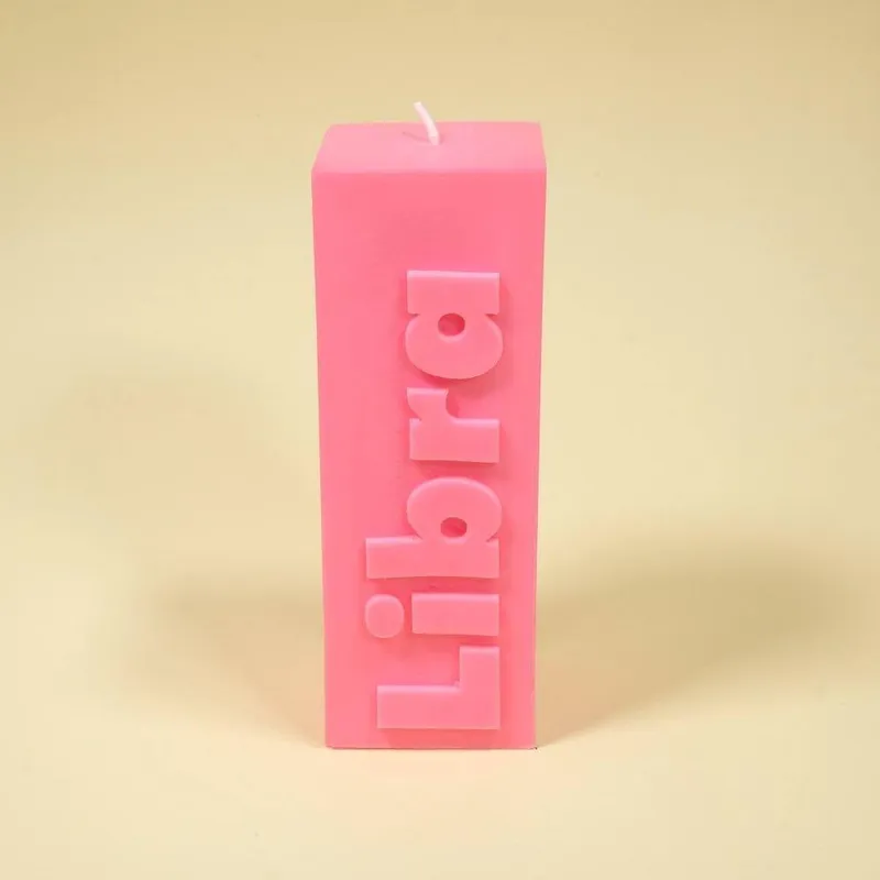 Flamingo Candles Unisex Libra Zodiac Block Pillar Candle in Bright Pink Bright Pink One Size female