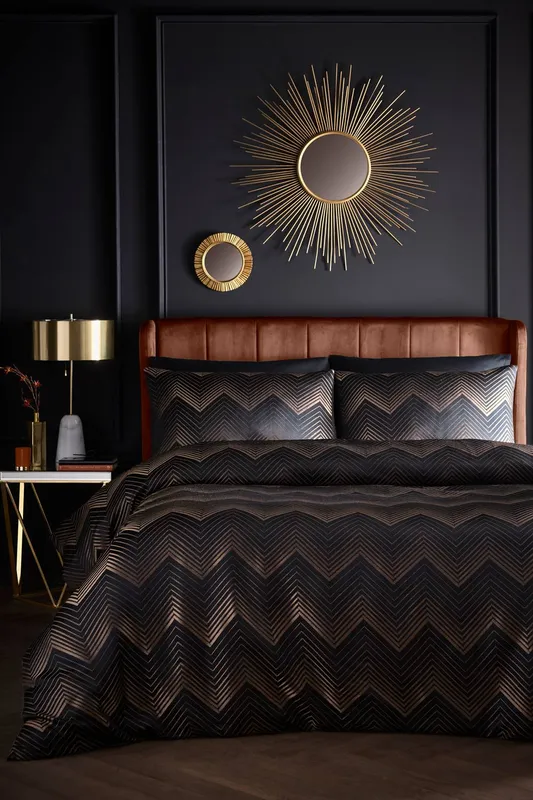 Laurence Llewelyn-Bowen 'Cocktail' Geometric Jacquard Duvet Cover Set in Black Size: Double - Black - Size: Double