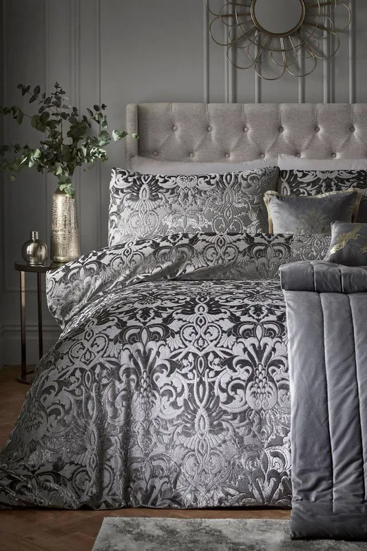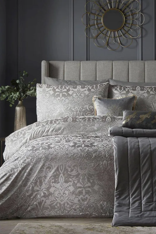 Laurence Llewelyn-Bowen 'Firenza' Damask Velvet Duvet Cover Set in Dark Grey Size: Double - Dark Grey - Size: Double