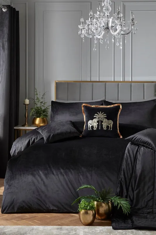 Laurence Llewelyn-Bowen 'Montrose' Luxury Velvet Duvet Cover Set in Black Size: King Black King