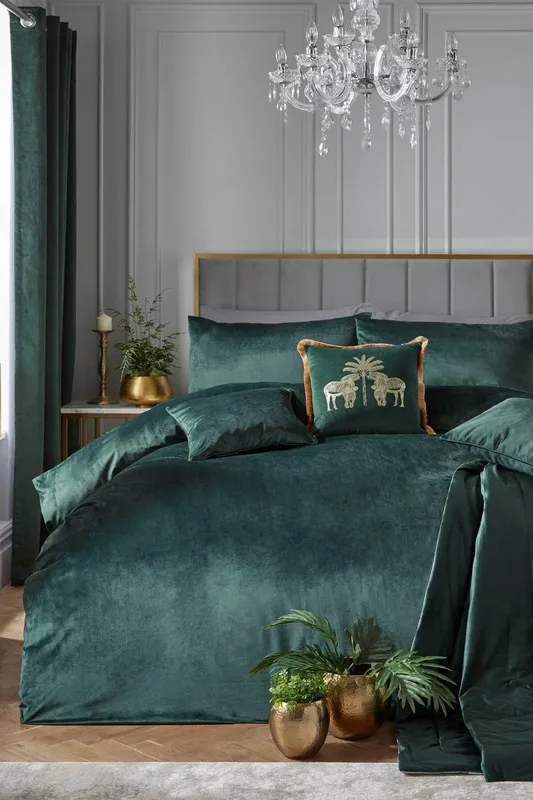 Laurence Llewelyn-Bowen 'Montrose' Luxury Velvet Duvet Cover Set in Bottle Green Size: Double - Bottle Green - Size: Double