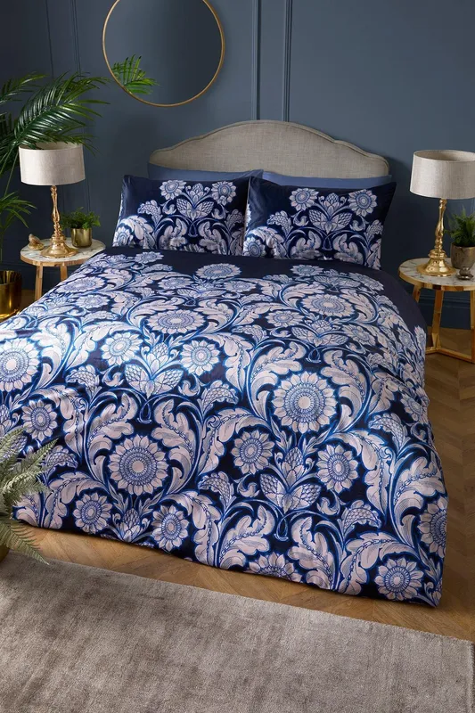Laurence Llewelyn-Bowen 'Romilly' Floral Jacquard Duvet Cover Set in Blue Size: Super King Blue Super King