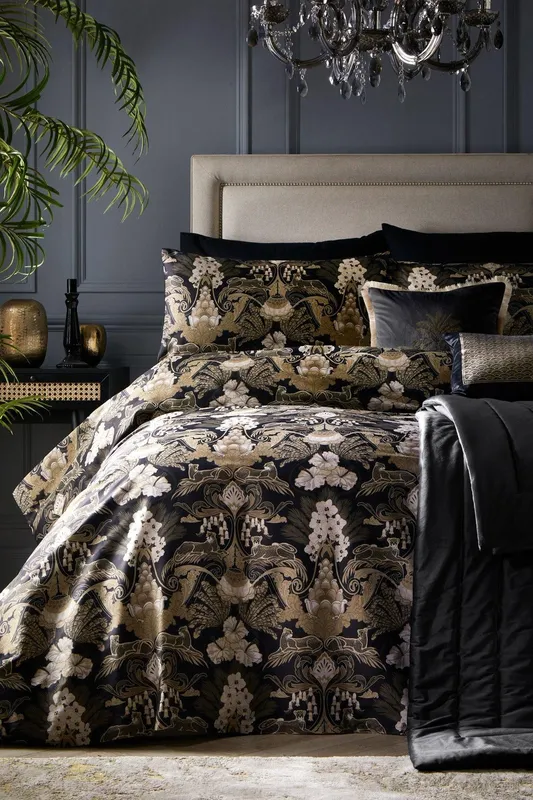 Laurence Llewelyn-Bowen 'Suburban Jungle' 100% Cotton Rich Duvet Cover Set in Black Size: Super King Black Super King